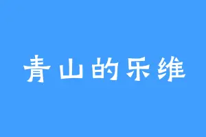 青山的乐维的新书